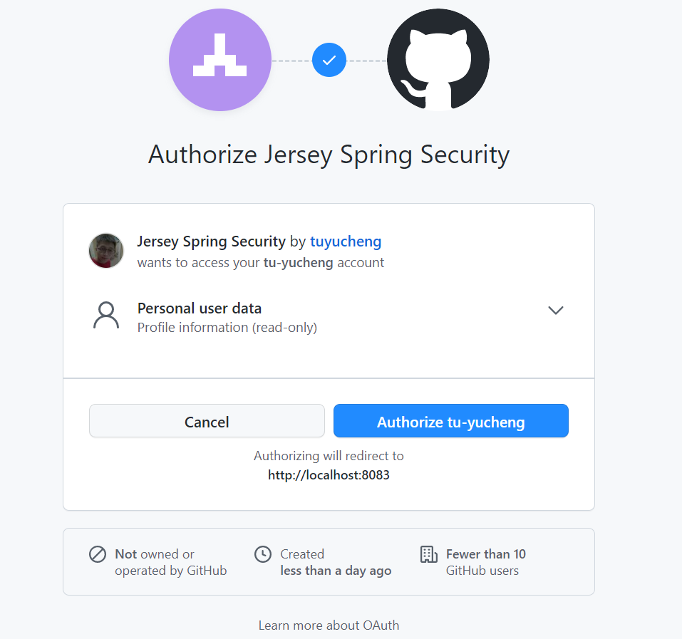 response_type的值为code,表示OAuth2授权类型为授权码。同时,client_id参数有助于识别我们的应用程序。关于所有参数的含义,请前往GitHub开发者页面。